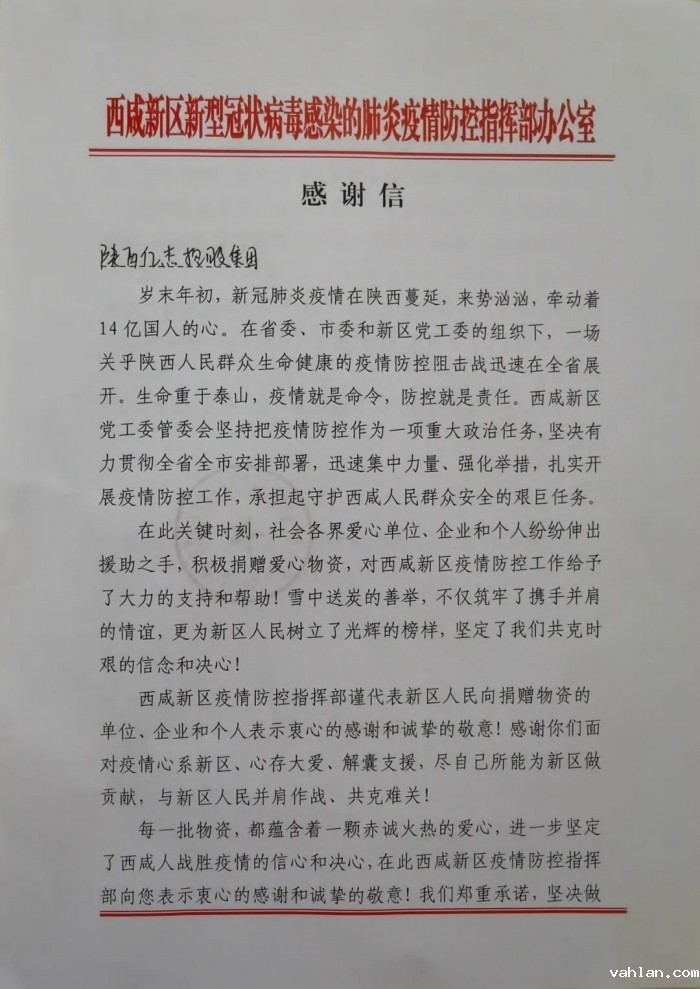 西咸新区、安康市分别向亿杰控股集团发来《感谢信》、《捐赠证书》、捐赠发票等,对集团心怀大爱、慷慨解囊的义举表示衷心的感谢和诚挚的敬意!疫情当前,使命在肩,让我们众志成城,守望相助,同心战疫,待到春暖花开时,“陕”河无恙,“西”望长安!