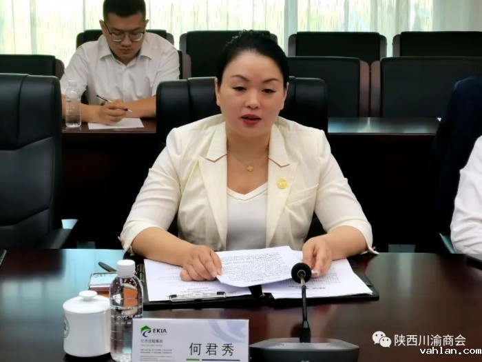亿杰控股集团副总经理袁金敏通过PPT介绍了集团近年来坚持党建引领,积极响应“3060碳达峰、碳中和目标”和“一带一路”战略,在参与“混改”、“国际化”发展、助力秦创原建设、打造数字平台经济、践行社会责任等方面的发展情况。