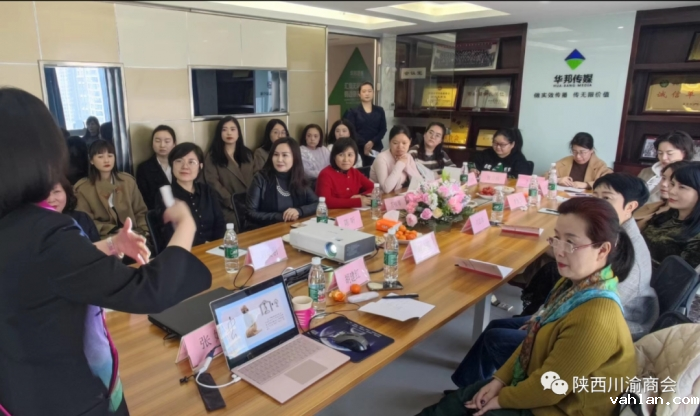 为进一步提升陕西川渝商会妇女联合会成员的自我保健意识,关爱女性心理和生理健康,增加女性魅力与自信心,2023年2月24日,在三八妇女节来临之际,商会常务副会长、妇女联合会主任陈昕邀请华夏盛德礼商书院西安分院院长张娟、华夏礼友会全球事业合伙人唐凝在华邦传媒集团会议室为大家分享了以“新魅力女性之幸福人生”为主题的讲座,并进行了亲切交流。