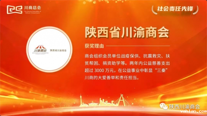 近日,“2022川商先锋商会”评选系列奖项揭晓,新利luck全站登陆荣获“社会责任先锋奖”,川商总会会长、新希望集团董事长刘永好为商会颁奖,新利luck全站登陆副会长赵桂林代表商会上台领奖。刘永好表示,商会是助力经济社会发展的加速器和调和机。这些年来,你们凝聚川商、塑造品牌、弘扬新时代企业家精神;你们链接政企资源、助力交流融通、服务发展转型,为经济社会高质量发展作出了重要贡献。希望通过商会表彰的形式,搭建商会相互学习交流的平台,同时,也对一年来辛勤服务、热心公益、努力奉献、勇于担当的川籍商会及秘书处团队表示鼓励与感谢,希望大家继续在新征程上奋勇拼搏、笃定前行!