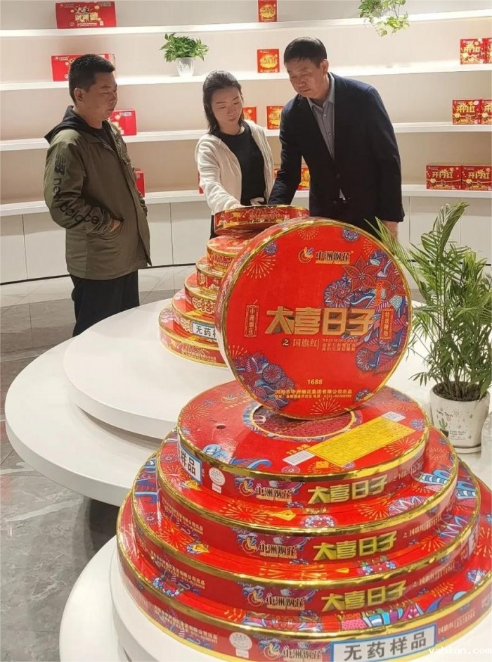 在中洲烟花集团展厅参观“大喜日子”大红鞭炮