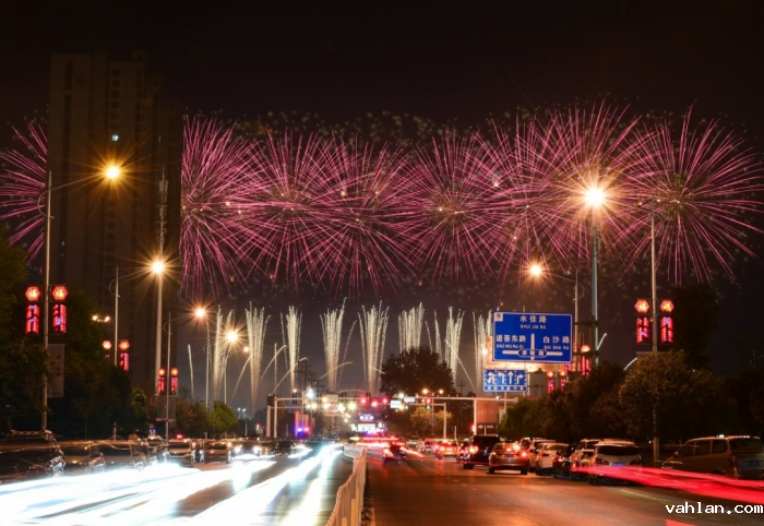 绚丽多彩的焰火照亮了浏阳城市的夜空 彰显了“一河诗画, 满城烟花”魅力