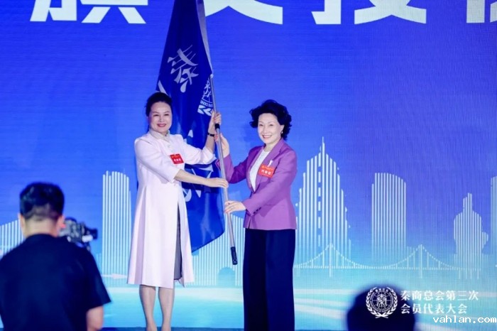 在秦商总会第三届理事会、监事会就职典礼上,秦商总会第二届理事会会长郑翔玲同新当选的第三届理事会会长崔荣华携手登台举行会旗交接仪式,郑翔玲会长双手挥舞秦商总会会旗并亲手交于崔荣华会长手中,600余名嘉宾共同见证秦商总会薪火相传的盛况。陈春江副省长为新当选的秦商总会永远荣誉会长郑翔玲和秦商总会第三届理事会会长崔荣华授牌。
