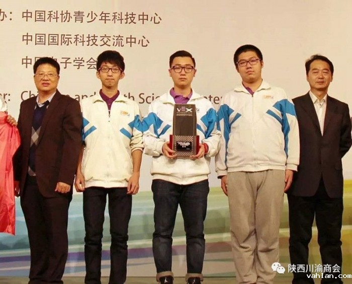亮剑口才青少年学员孟启泰(左二)团队代表西安高新一中在国家各级领导人重视的“2015世界机器人大会”凭借举止大方的台风、幽默风趣的语言、清晰的逻辑思维以及非凡的控场能力赢得了加时赛的胜利而略胜对手一筹荣获冠军,也是中国首次荣获本赛冠军。